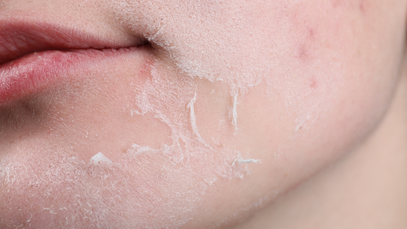 👉 Cách xử lý: Không tự lột bỏ mảng bong, thay vào đó thoa kem dưỡng ẩm có chứa ceramide hoặc hyaluronic acid để làm dịu.